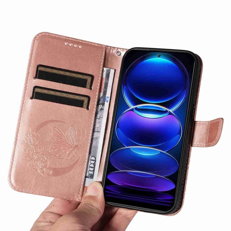 Θήκη τηλεφώνου από δέρμα με ανάγλυφο σχέδιο πεταλούδας Swallowtail για Xiaomi Redmi Note 12 5G Global (Μπλε)