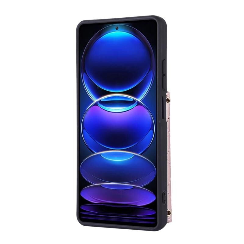 Για Xiaomi Redmi Σημείωση 12 5G Οριζόντια κάρτα τσάντα δαχτυλίδι κάτοχος τηλέφωνο υπόθεση με διπλή κορδόνι (Rose Gold)