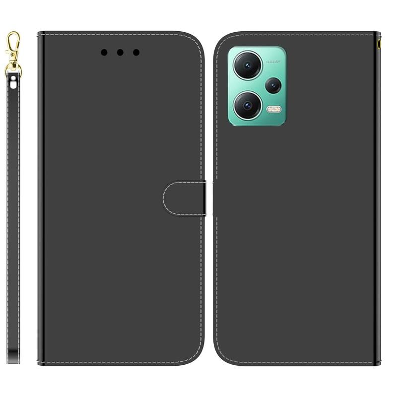 Για Xiaomi Redmi Note 12 5G Απομιμητική επιφάνεια καθρέφτη οριζόντια Flip δερμάτινη θήκη τηλεφώνου (μαύρο)