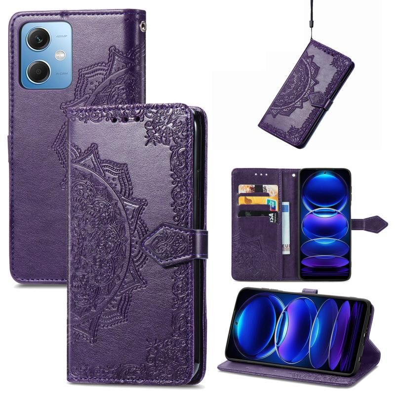 Για Xiaomi Redmi Σημείωση 12 5G Mandala λουλούδι ανάγλυφο δέρμα τηλέφωνο υπόθεση (μωβ)