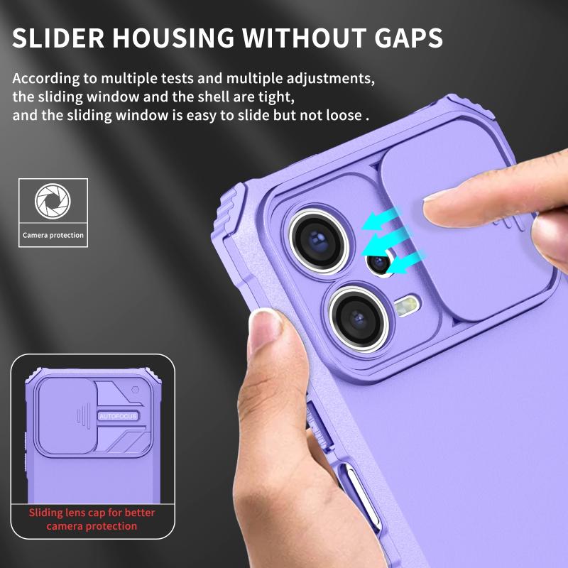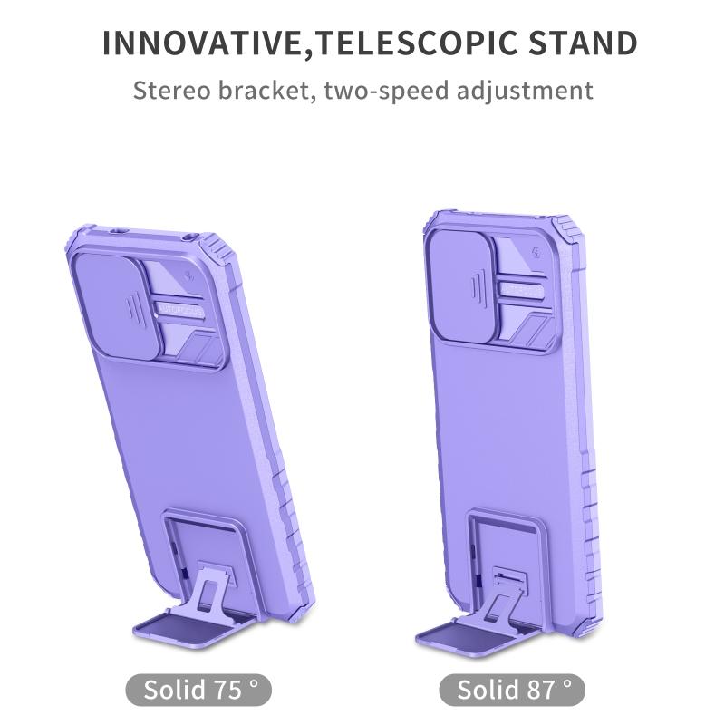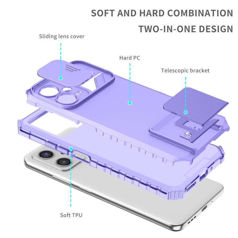 Θήκη κινητού τηλεφώνου με στερεοσκοπικό στήριγμα και συρόμενο προστατευτικό κάμερας για Xiaomi Redmi Note 12 5G / Poco X5 (Μωβ)