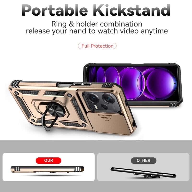 Για Xiaomi Redmi Note 12 5G συρόμενη Camshield κάτοχος υπόθεση τηλεφώνου (χρυσό)