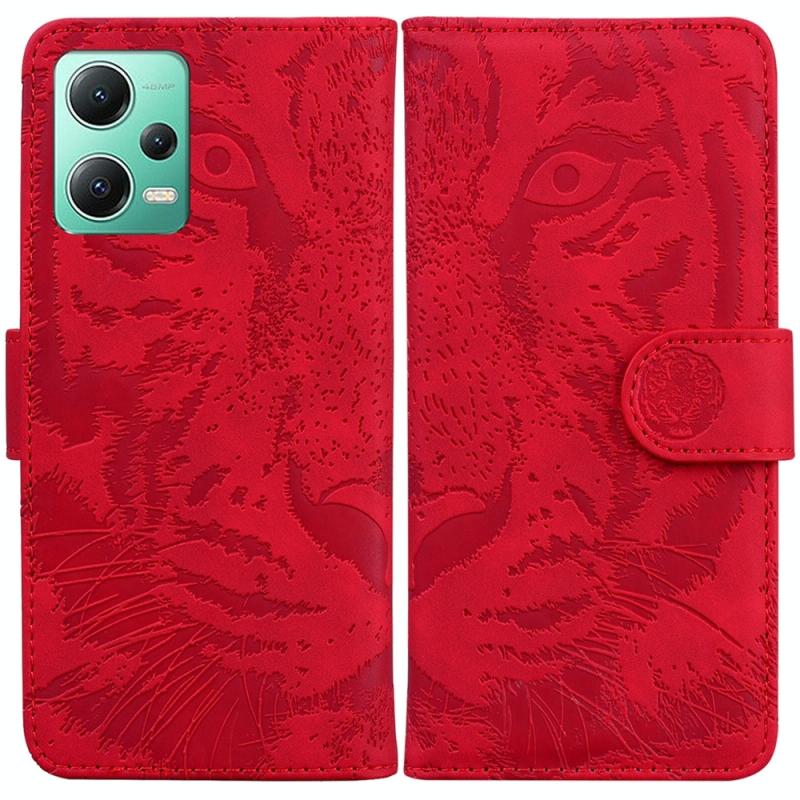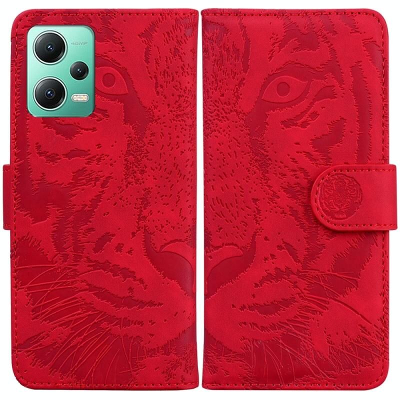 Θήκη δερμάτινη με ανάγλυφο τίγρη για Xiaomi Redmi Note 12 5G (Κόκκινο)