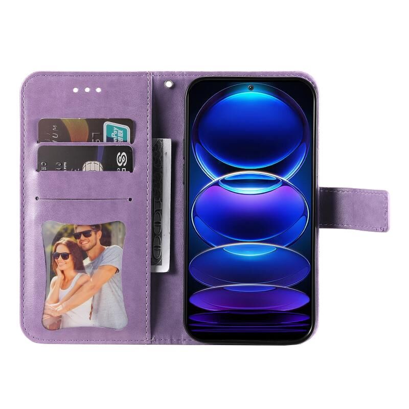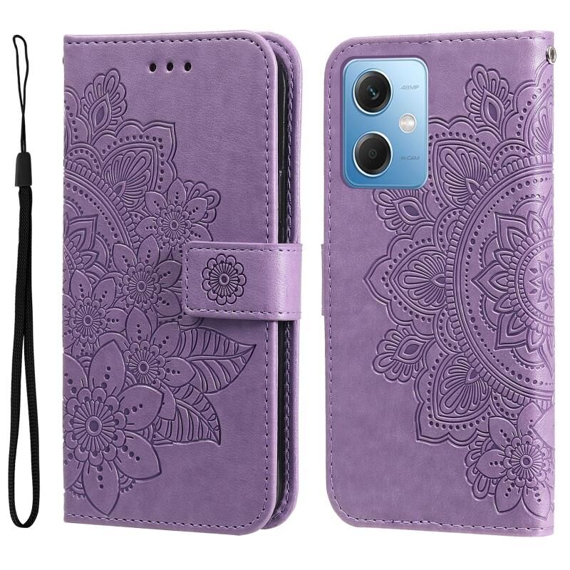 Θήκη τηλεφώνου από δέρμα με ανάγλυφα 7 πέταλα λουλουδιών για Xiaomi Redmi Note 12 Κίνας (Χρυσορόδινο)