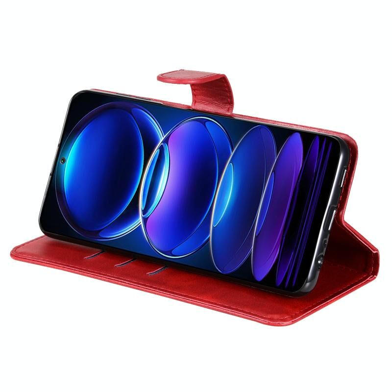 Θήκη τηλεφώνου από δέρμα με υφή μοσχαριού και φερμουάρ για Xiaomi Redmi Note 12 Κίνας (Κόκκινο)