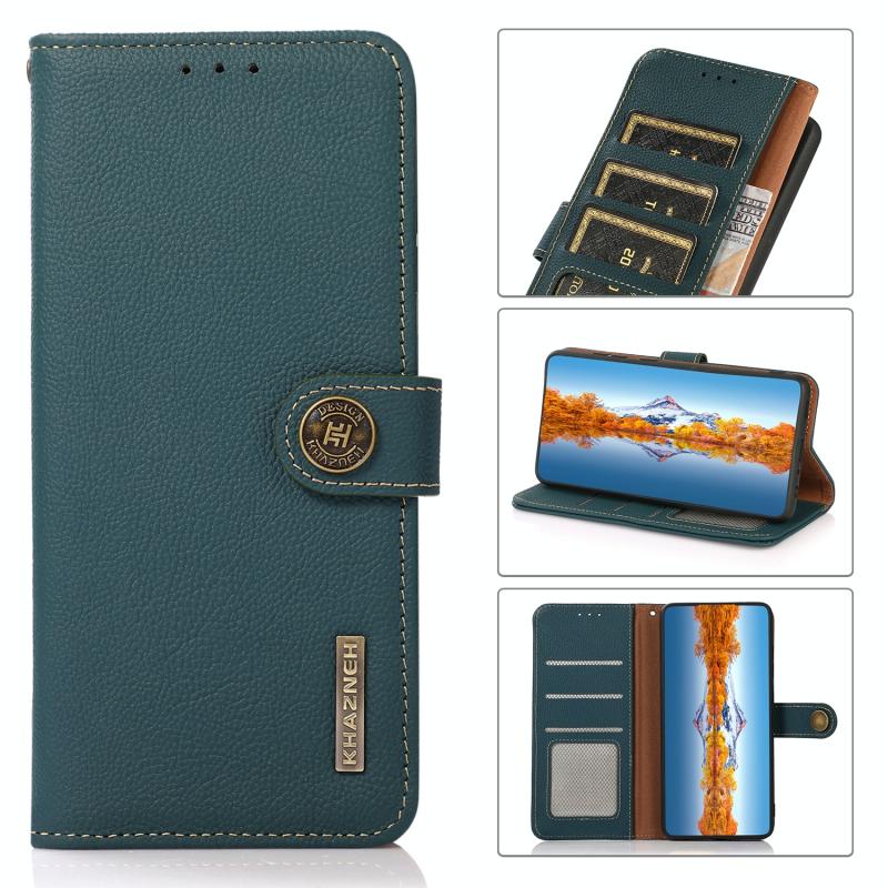 For Xiaomi Redmi Note 12 China KHAZNEH Custer Genuine Leather RFID Phone Case(Green)