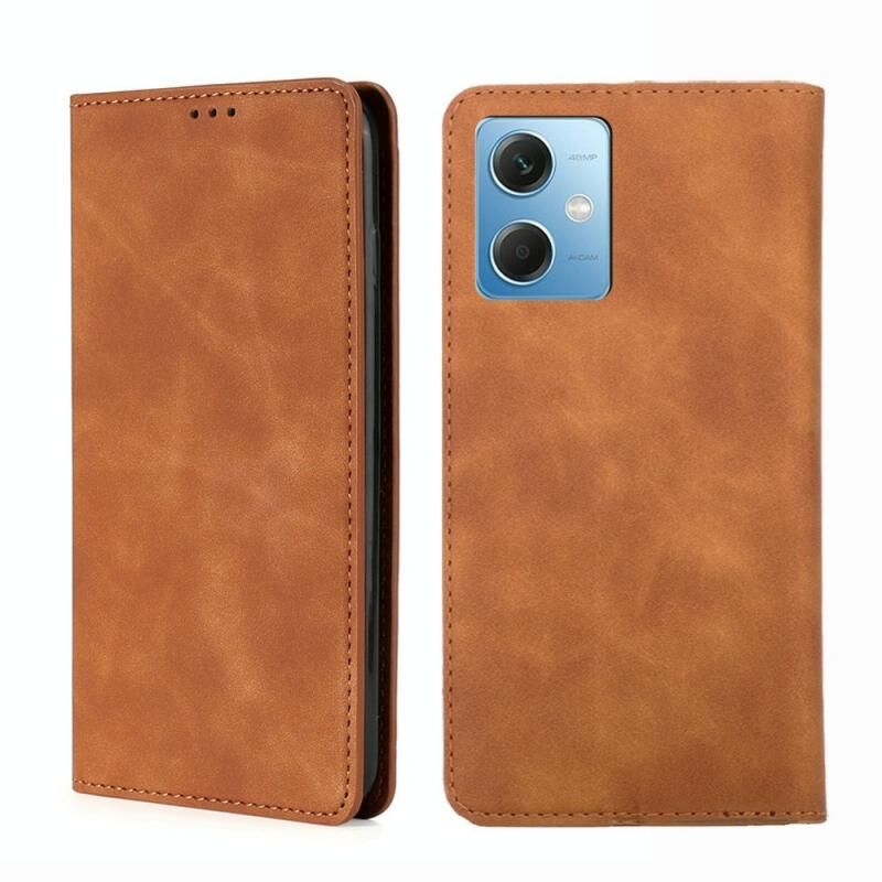 Για Xiaomi Redmi Note 12 Κίνα δέρμα αίσθηση μαγνητική οριζόντια Flip δέρμα τηλέφωνο υπόθεση (ανοιχτό καφέ)