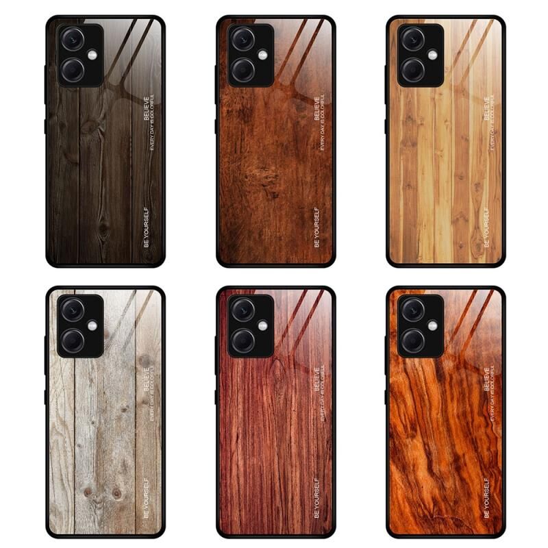 Για Xiaomi Redmi Σημείωση 12 Κίνα Wood Grain γυαλί TPU τηλέφωνο υπόθεση (μαύρο)