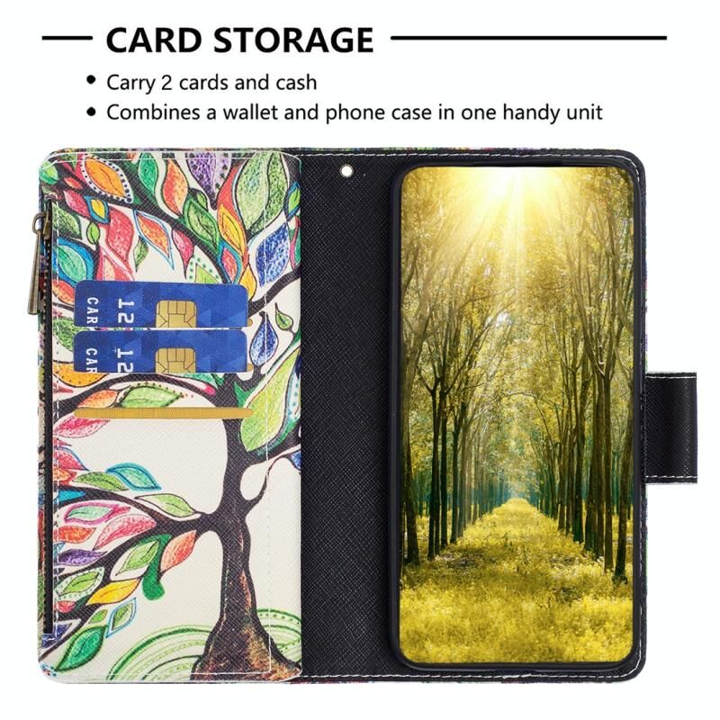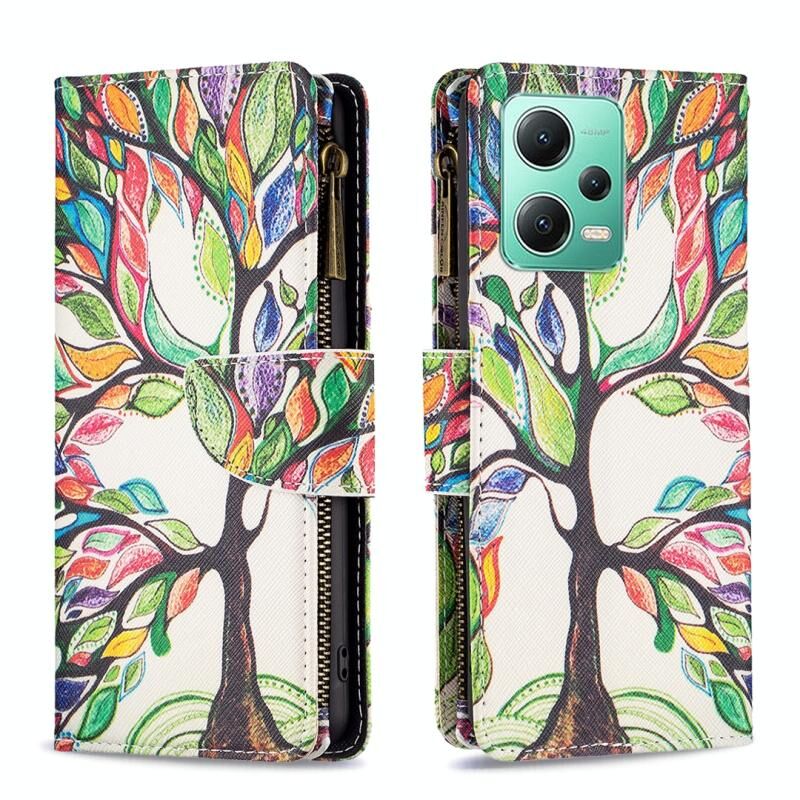 Θήκη τηλεφώνου δερμάτινη με φερμουάρ και πολύχρωμο σχέδιο για Xiaomi Redmi Note 12 Global (Μεγάλο Δέντρο)