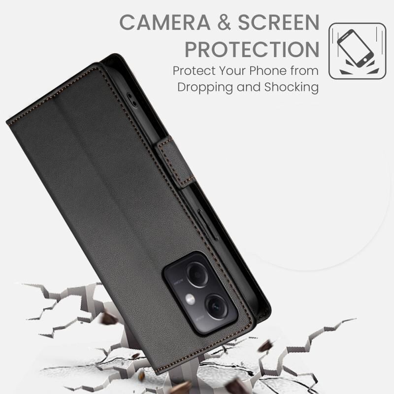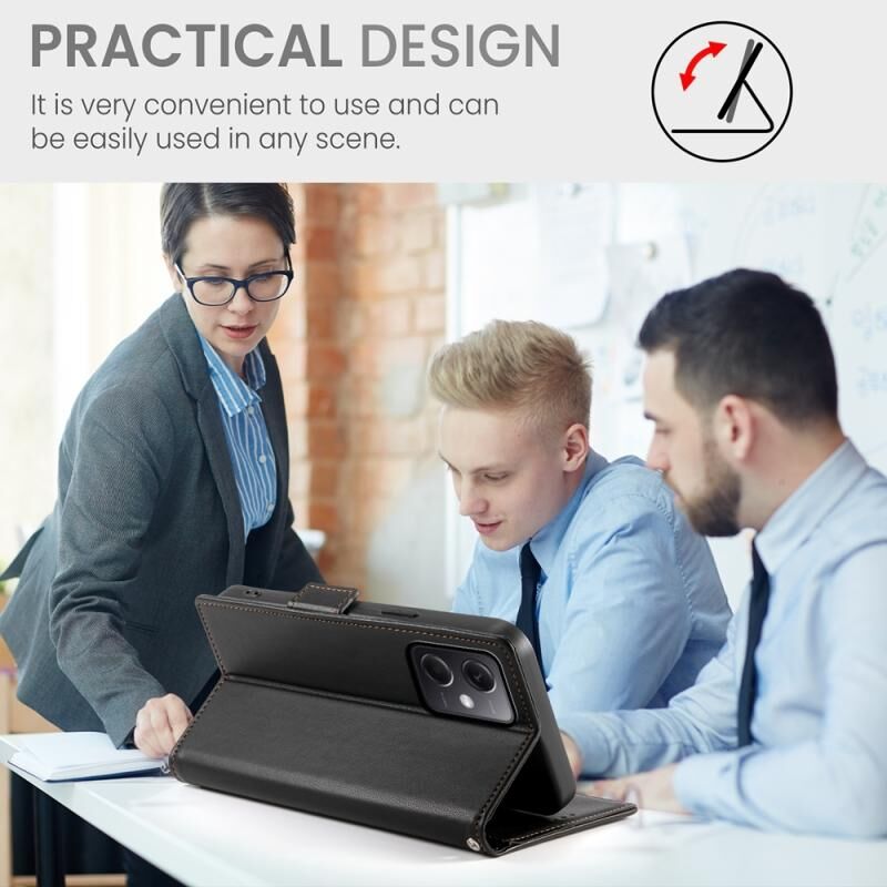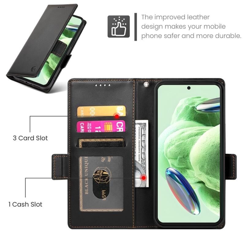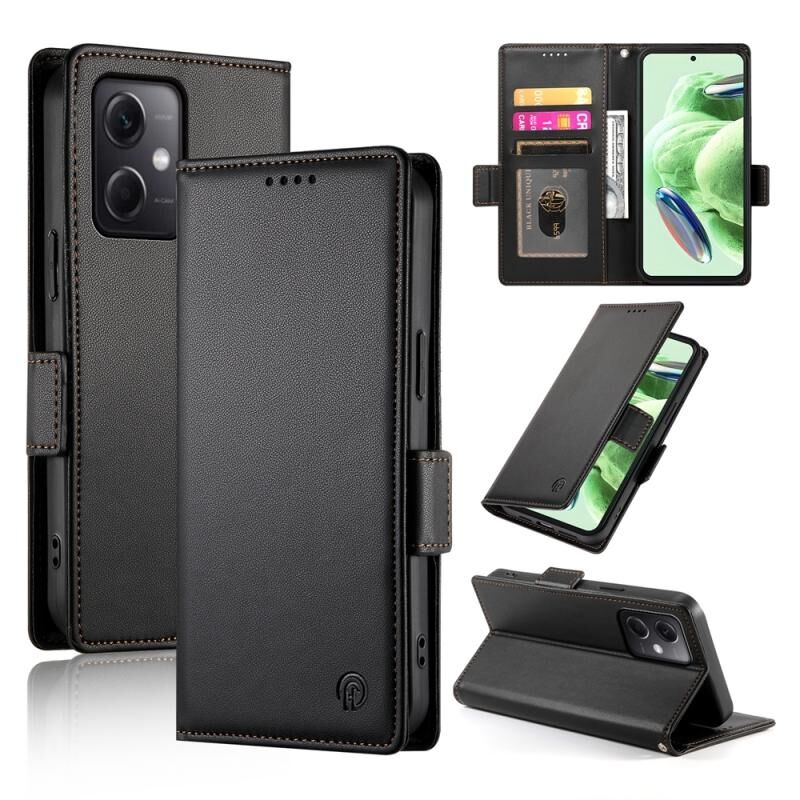 Για Xiaomi Redmi Σημείωση 12 Παγκόσμια Ινδία πλευρά πόρπη μαγνητική παγωμένο δέρμα τηλέφωνο υπόθεση (Μαύρο)