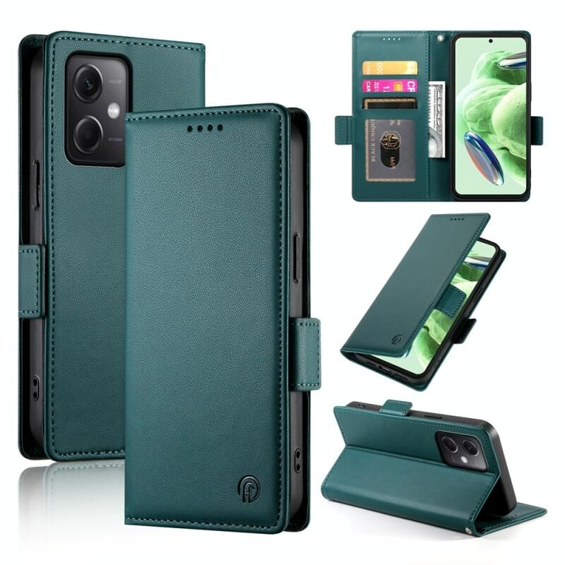 Για Xiaomi Redmi Σημείωση 12 Παγκόσμια Ινδία πλευρά πόρπη μαγνητική παγωμένο δέρμα τηλέφωνο υπόθεση (Σκούρο πράσινο)