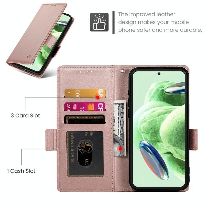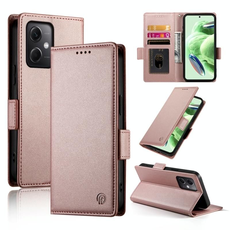 Για Xiaomi Redmi Σημείωση 12 Παγκόσμια Ινδία πλευρά πόρπη μαγνητική παγωμένο δέρμα τηλέφωνο υπόθεση (Ροζ χρυσός)