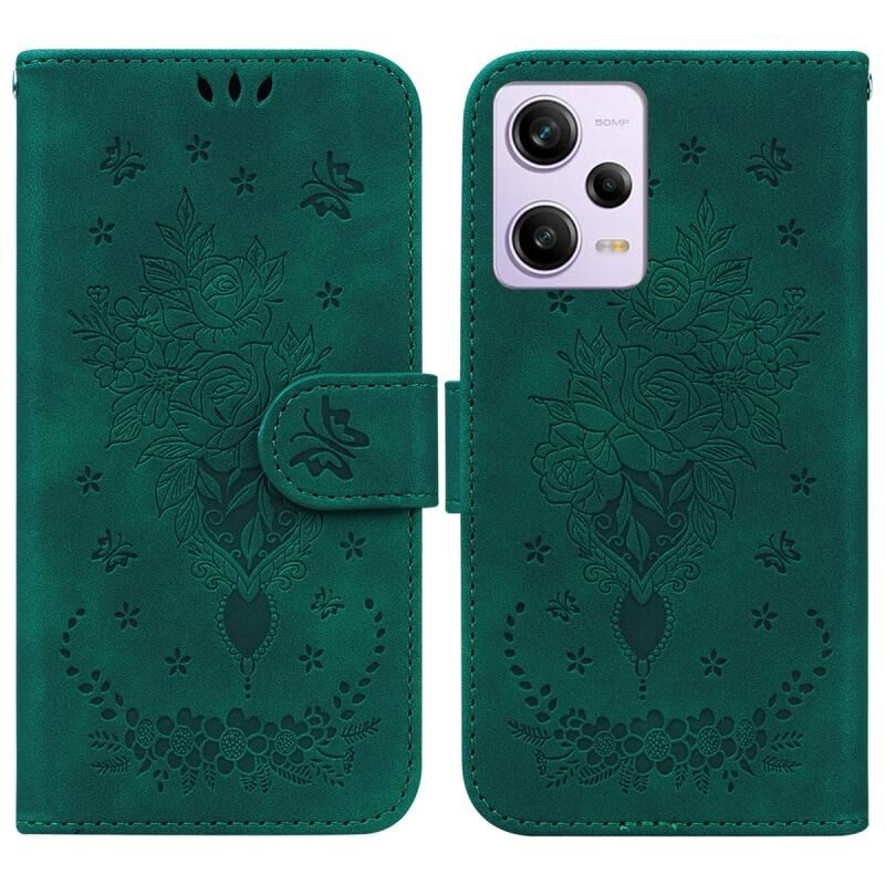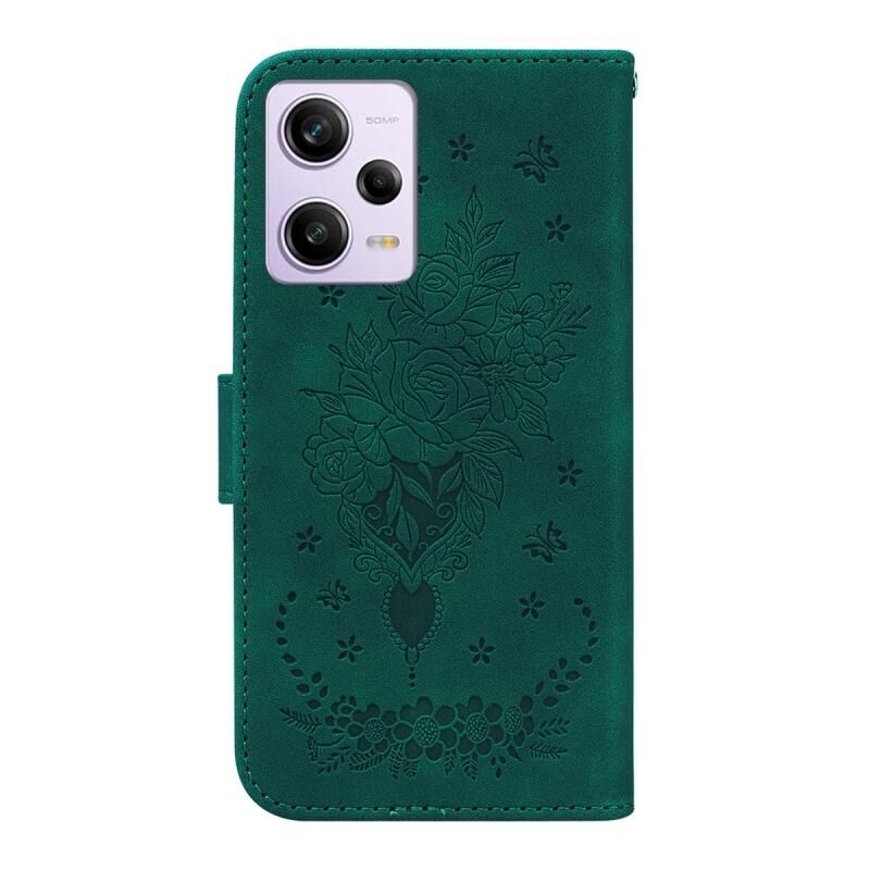 Για Xiaomi Redmi Note 12 Pro 5G πεταλούδα Rose ανάγλυφη δερμάτινη θήκη τηλεφώνου (πράσινο)