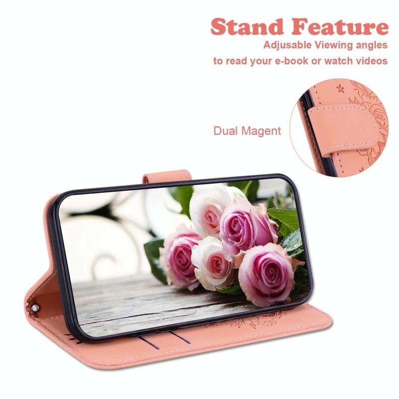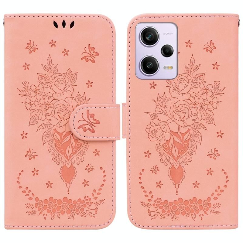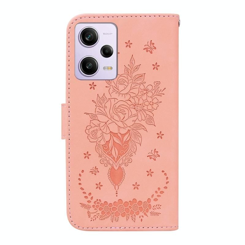 Για Xiaomi Redmi Note 12 Pro 5G πεταλούδα Rose ανάγλυφη δερμάτινη θήκη τηλεφώνου (ρόζ)