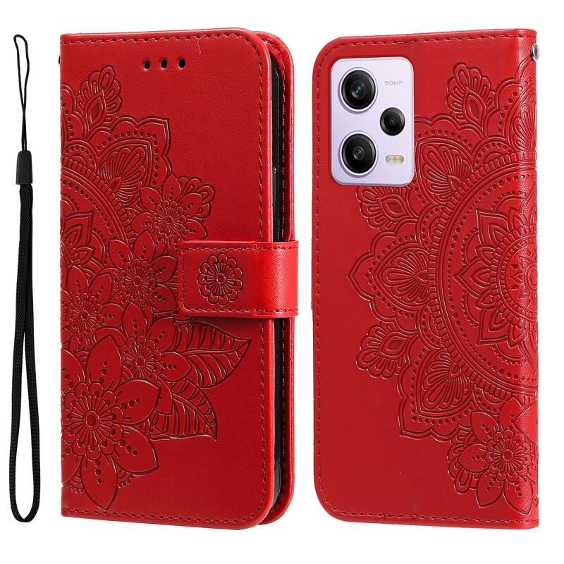 Θήκη τηλεφώνου από δέρμα με ανάγλυφα 7 πέταλα λουλουδιών για Xiaomi Redmi Note 12 Pro 5G Κίνας (Κόκκινο)
