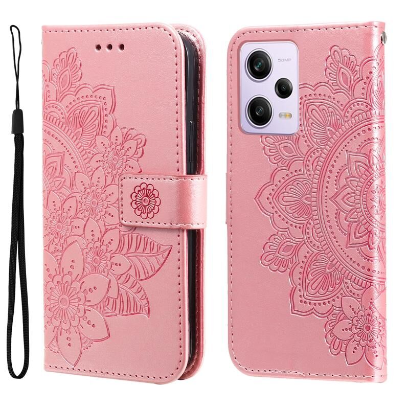 Θήκη τηλεφώνου από δέρμα με ανάγλυφα 7 πέταλα λουλουδιών για Xiaomi Redmi Note 12 Pro 5G Κίνας (Ροζ χρυσός)