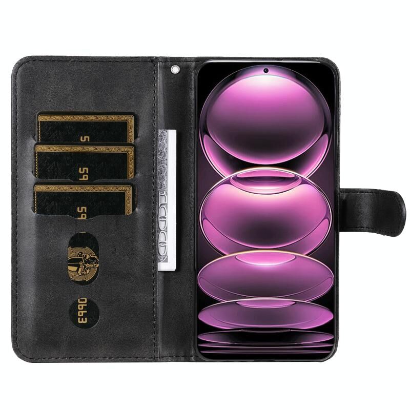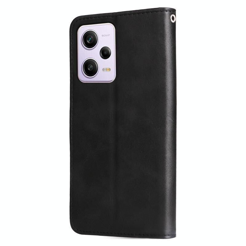 Θήκη τηλεφώνου από δέρμα με υφή μοσχαριού και φερμουάρ για Xiaomi Blackmi Note 12 Pro 5G Κίνας (Μαύρο)