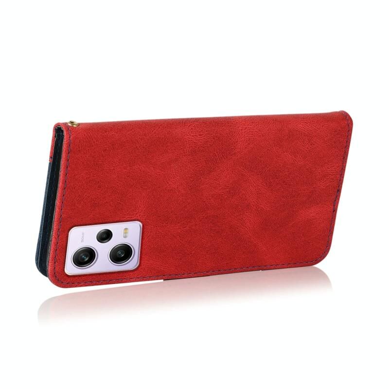 Για Xiaomi Redmi Σημείωση 12 Pro 5G Κίνα Διπλό χρώμα ραφή δέρμα τηλέφωνο υπόθεση (κόκκινο μπλε)