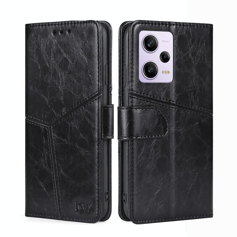 Για Xiaomi Redmi Σημείωση 12 Pro 5G Κίνα γεωμετρική ραφή οριζόντια Flip δέρμα τηλέφωνο υπόθεση (Μαύρο)