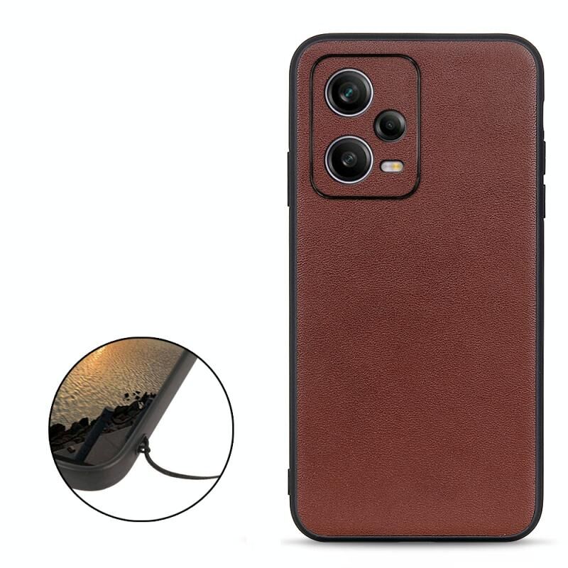 Θήκη κινητού τηλεφώνου Xiaomi Redmi Note 12 Pro 5G Κίνας με γνήσιο δέρμα υφής προβάτου, αντικραδασμική (Καφέ)