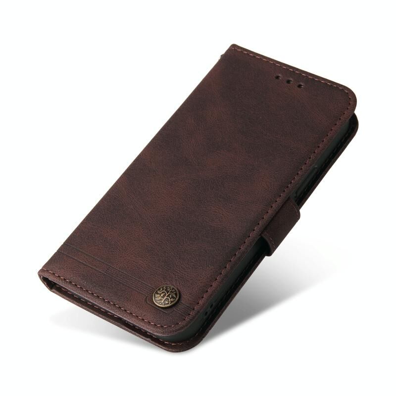 Θήκη τηλεφώνου Xiaomi Redmi Note 12 Pro 5G Κίνας, αίσθηση δέρματος, σχέδιο Δέντρου της Ζωής, μεταλλικά κουμπιά (Καφέ)