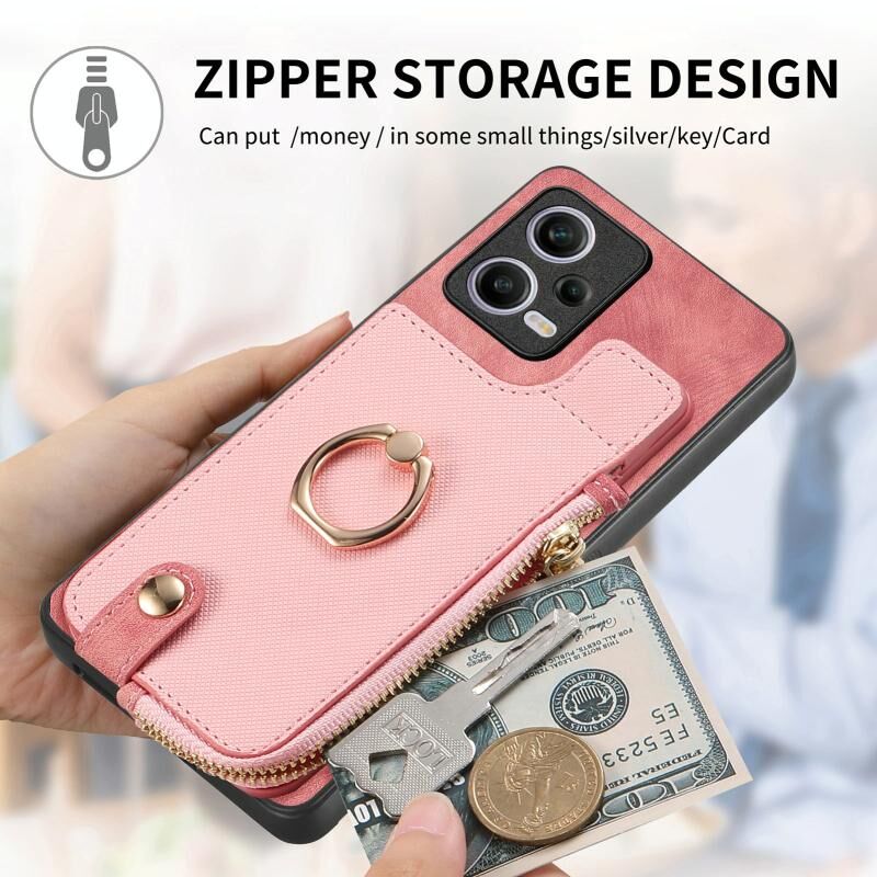 Για Xiaomi Redmi Note 12 Pro 5G Cross Δερμάτινο δαχτυλίδι κάθετη φερμουάρ πορτοφόλι πίσω υπόθεση τηλεφώνου (ρόζ)
