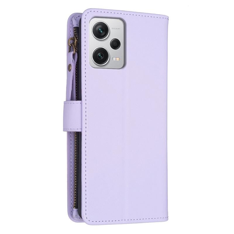 Για Xiaomi Redmi Note 12 Pro + 5G Global 9 Card Slots φερμουάρ πορτοφόλι δέρμα Flip τηλέφωνο υπόθεση (ανοιχτό μωβ)