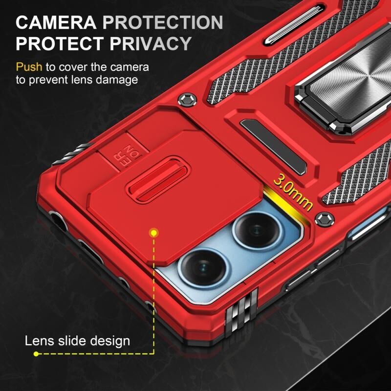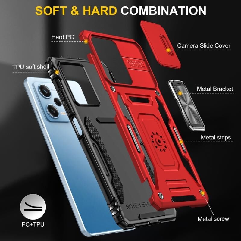 Για Xiaomi Redmi Note 12 Pro 5G Παγκόσμια θωράκιση PC + TPU Κάμερα ασπίδα υπόθεση τηλεφώνου (κόκκινο)