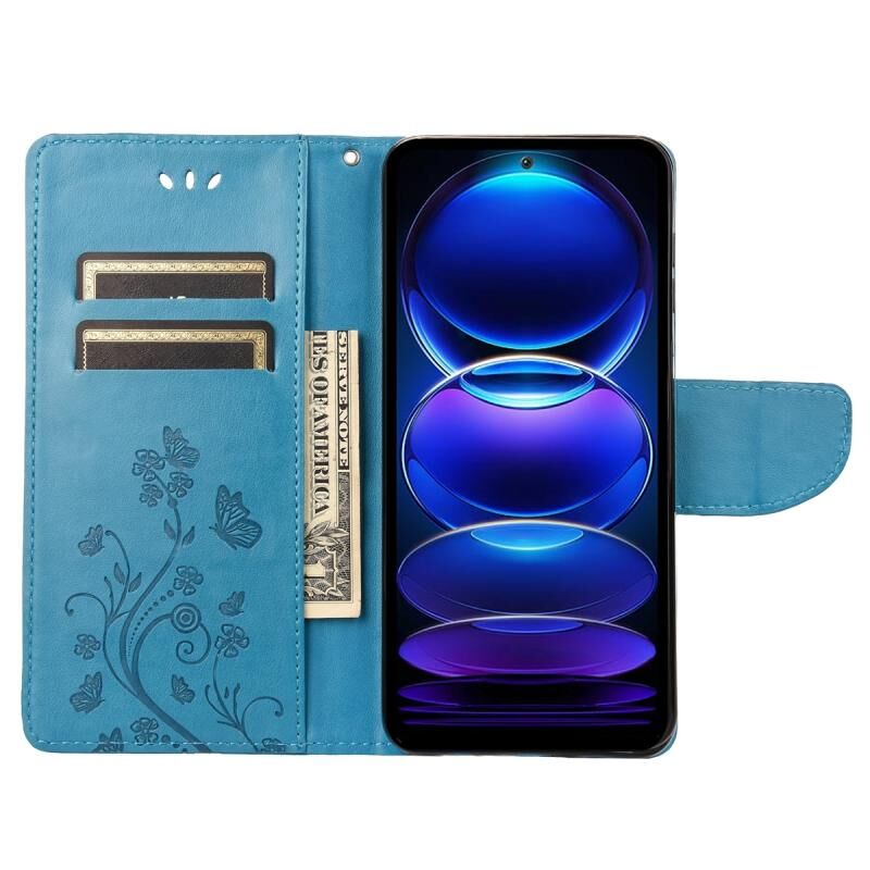 Για Xiaomi Redmi Σημείωση 12 Pro + 5G Παγκόσμια πεταλούδα λουλούδι μοτίβο δερμάτινη θήκη τηλεφώνου (μπλε)