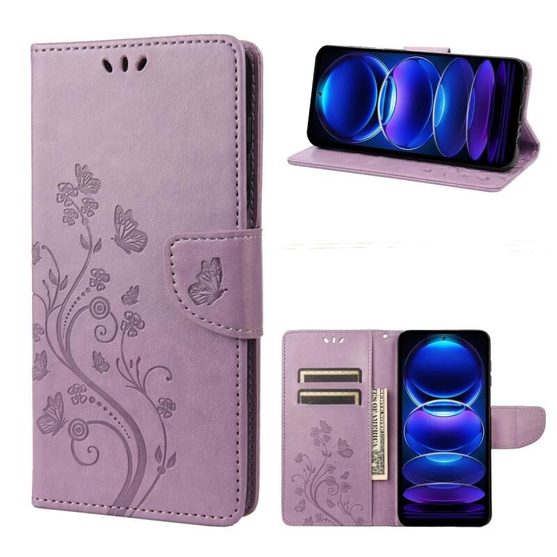 Για Xiaomi Redmi Σημείωση 12 Pro + 5G Παγκόσμια πεταλούδα λουλούδι μοτίβο δερμάτινη θήκη τηλεφώνου (Light Purple)