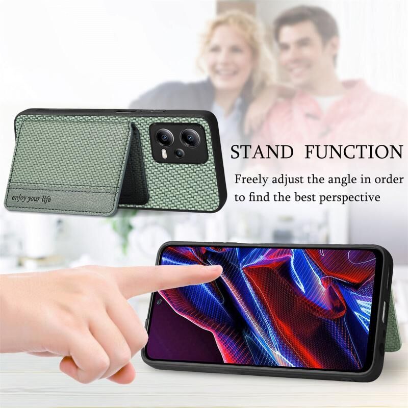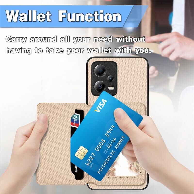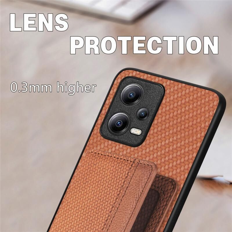 Για Xiaomi Redmi Σημείωση 12 Pro + 5G Παγκόσμια Carbon Fiber μαγνητική κάρτα τσάντα υπόθεση τηλεφώνου (μπλε)