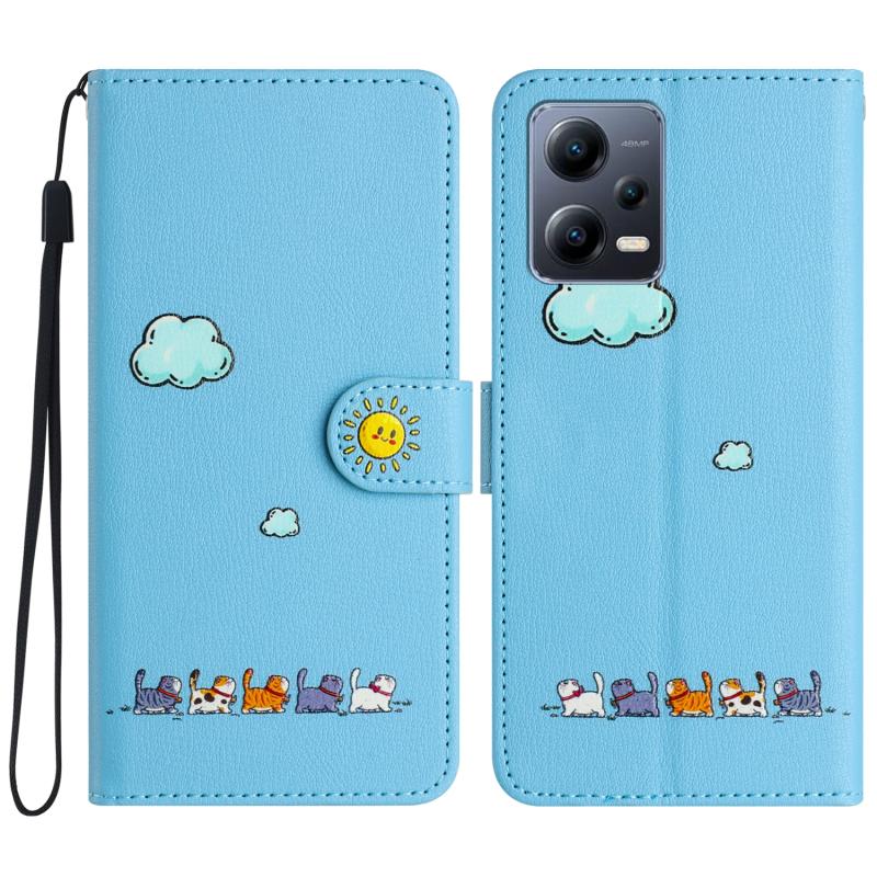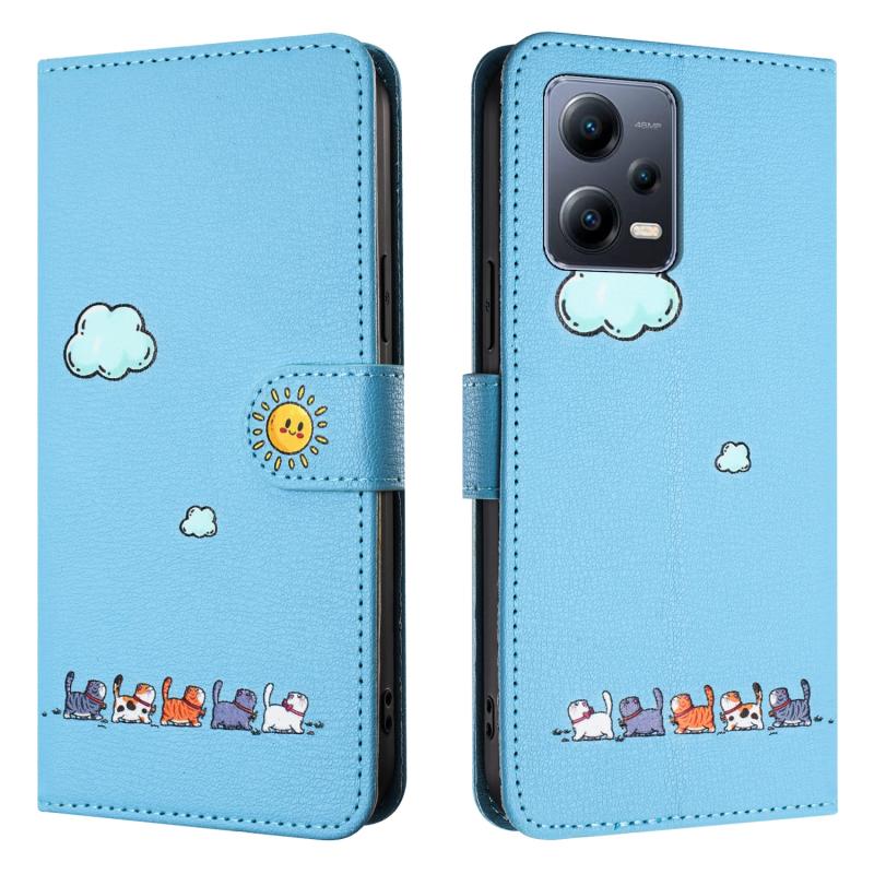 For Xiaomi Redmi Note 12 Pro 5G Global Cartoon Cats Leather Phone Case(Blue)