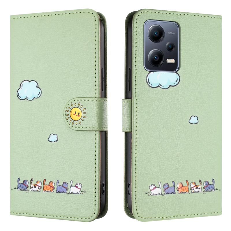 For Xiaomi Redmi Note 12 Pro 5G Global Cartoon Cats Leather Phone Case(Green)