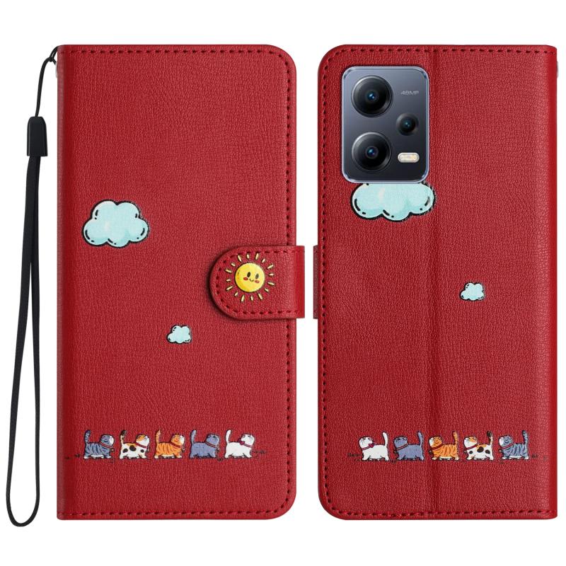 For Xiaomi Redmi Note 12 Pro 5G Global Cartoon Cats Leather Phone Case(Red)