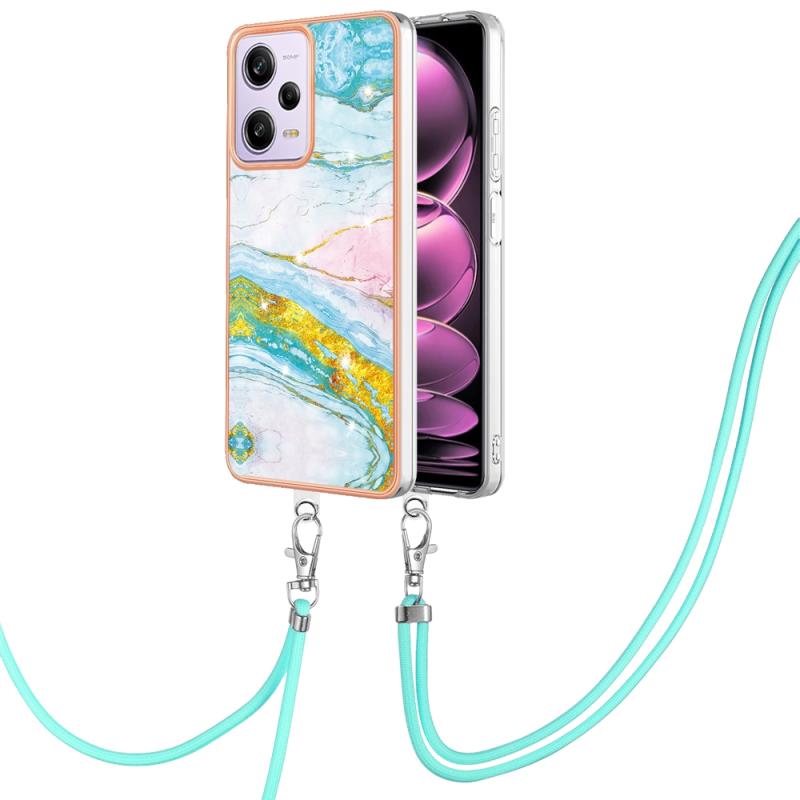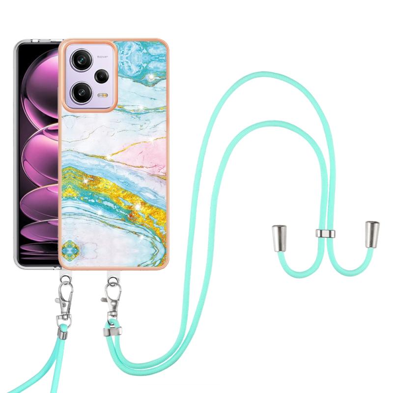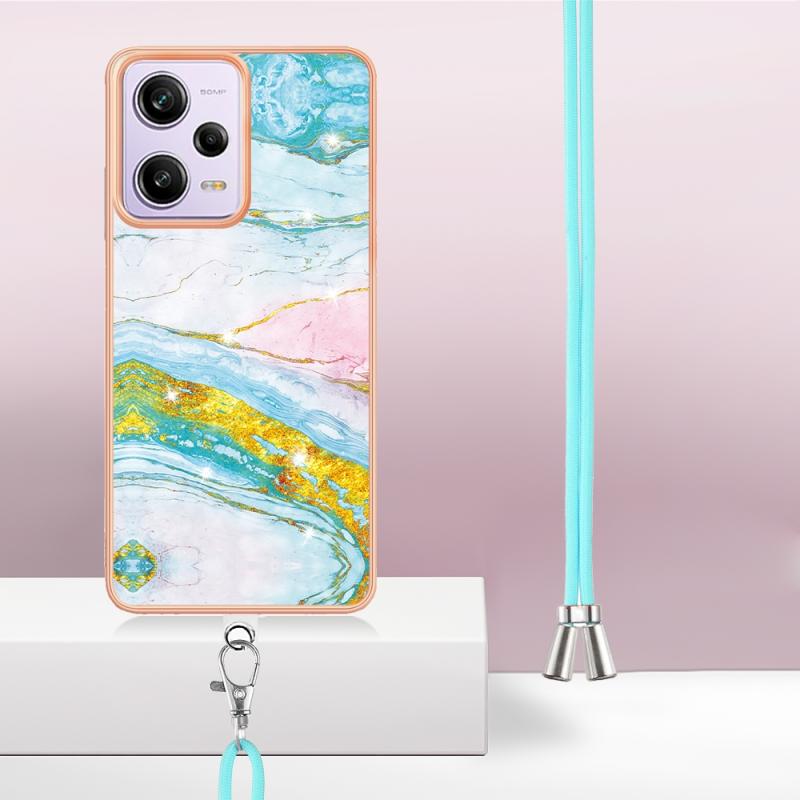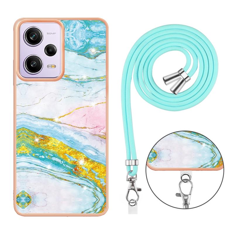 For Xiaomi Redmi Note 12 Pro 5G Global Electroplating Marble Dual-side IMD Phone Case with Lanyard(Green 004)