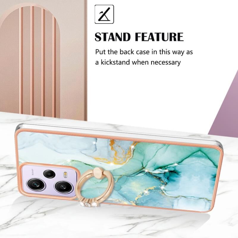 Θήκη κινητού τηλεφώνου Xiaomi Redmi Note 12 Pro 5G Global Electroplating Marble IMD TPU με δακτύλιο στήριξης (Πράσινο 003)