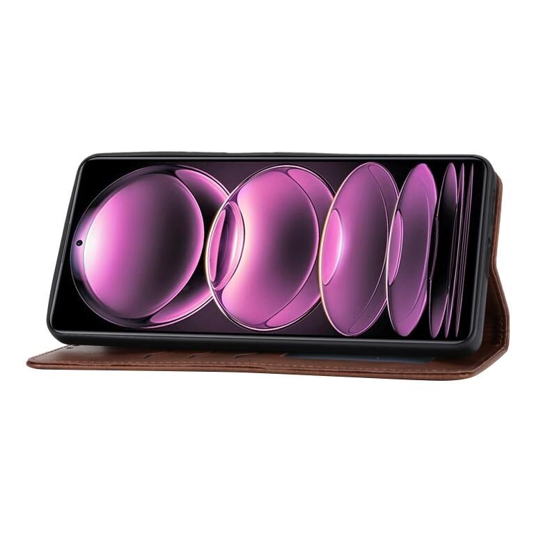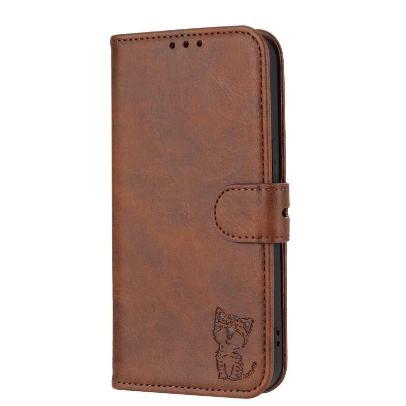 Για Xiaomi Redmi Σημείωση 12 Pro 5G Παγκόσμια ανάγλυφο Happy Cat μοτίβο Flip δέρμα τηλέφωνο υπόθεση (καφέ)