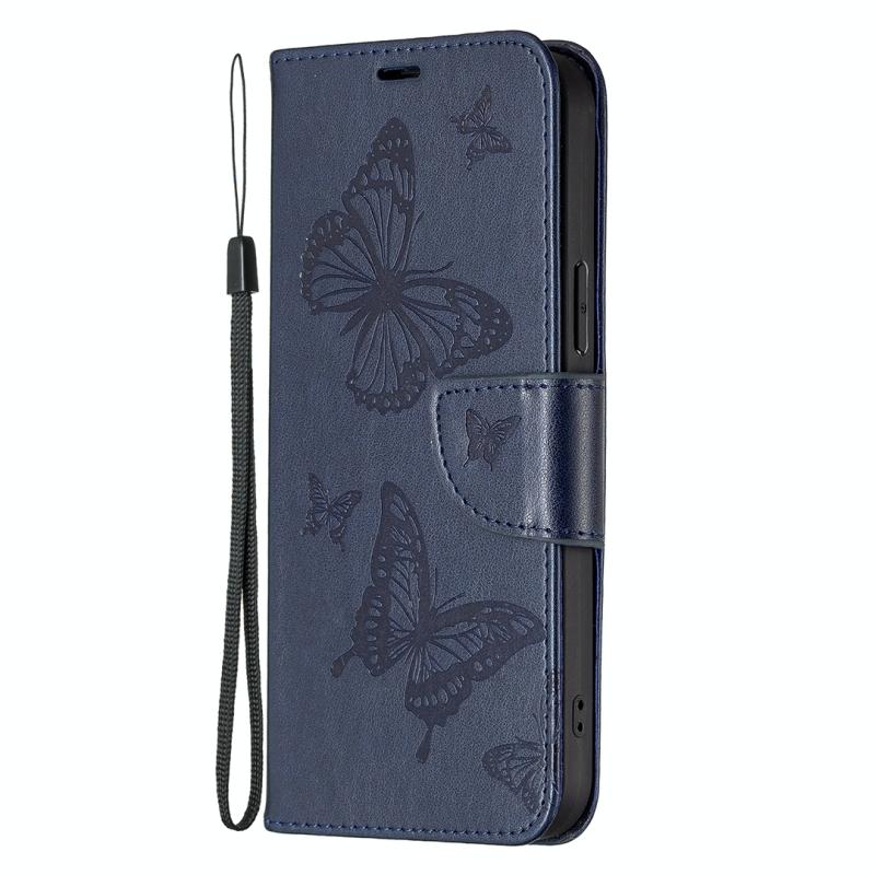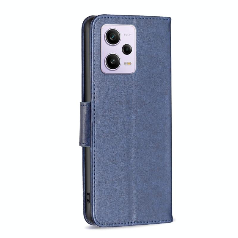 Θήκη τηλεφώνου δερμάτινη με ανάγλυφο σχέδιο δύο πεταλούδων για Xiaomi Redmi Note 12 Pro 5G Global (Μπλε)