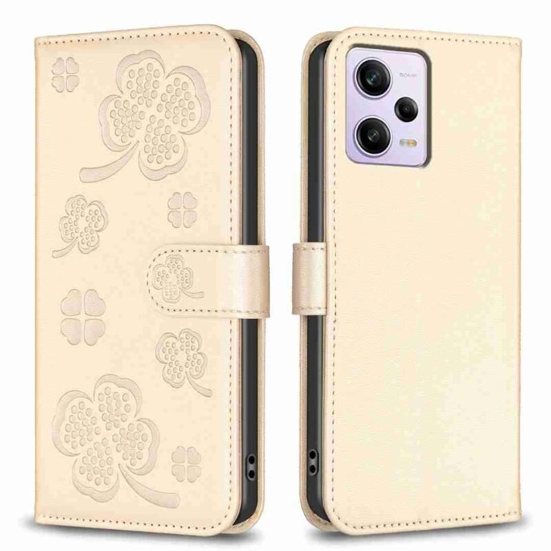 Για Xiaomi Redmi Note 12 Pro 5G Global Four-leaf ανάγλυφη δερμάτινη θήκη τηλεφώνου (χρυσό)