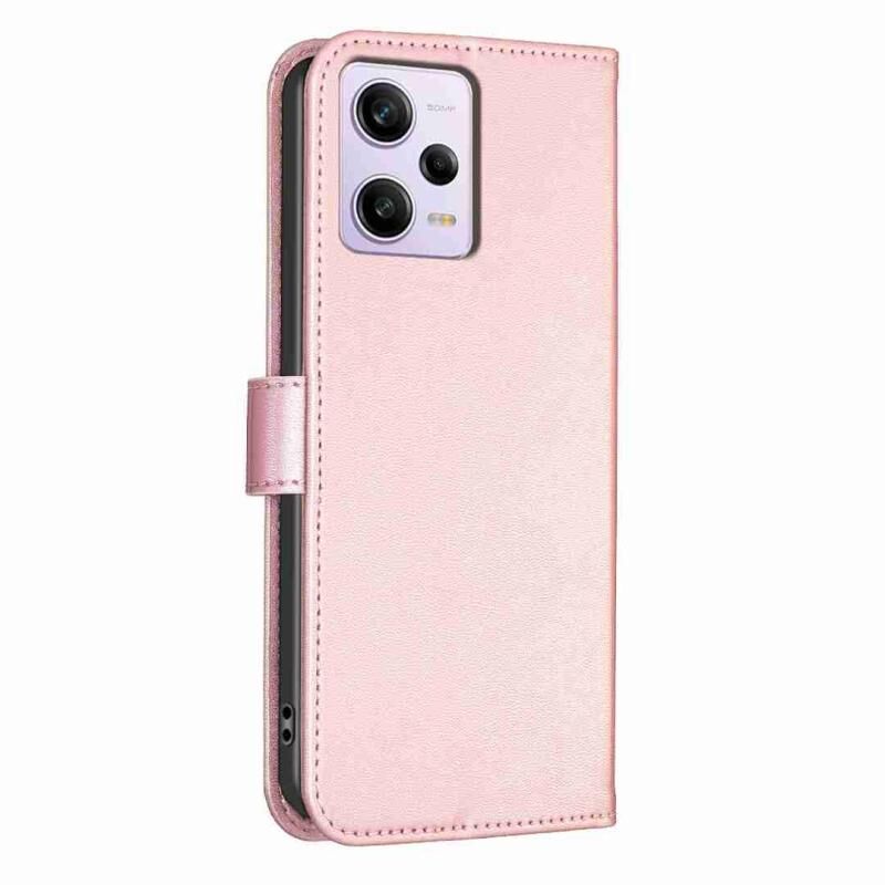 Για Xiaomi Redmi Note 12 Pro 5G Global Four-leaf ανάγλυφη δερμάτινη θήκη τηλεφώνου (ροζ)