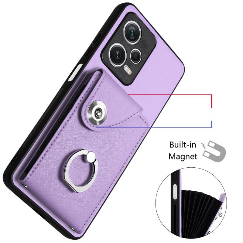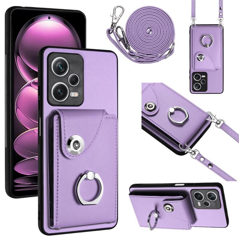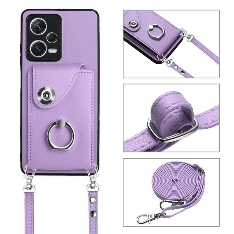 Για Xiaomi Redmi Σημείωση 12 Pro 5G Παγκόσμια Οργανική κάρτα τσάντα τσάντα δαχτυλίδι κάτοχος τηλέφωνο υπόθεση με μακρύ κορδόνι (Μωβ)