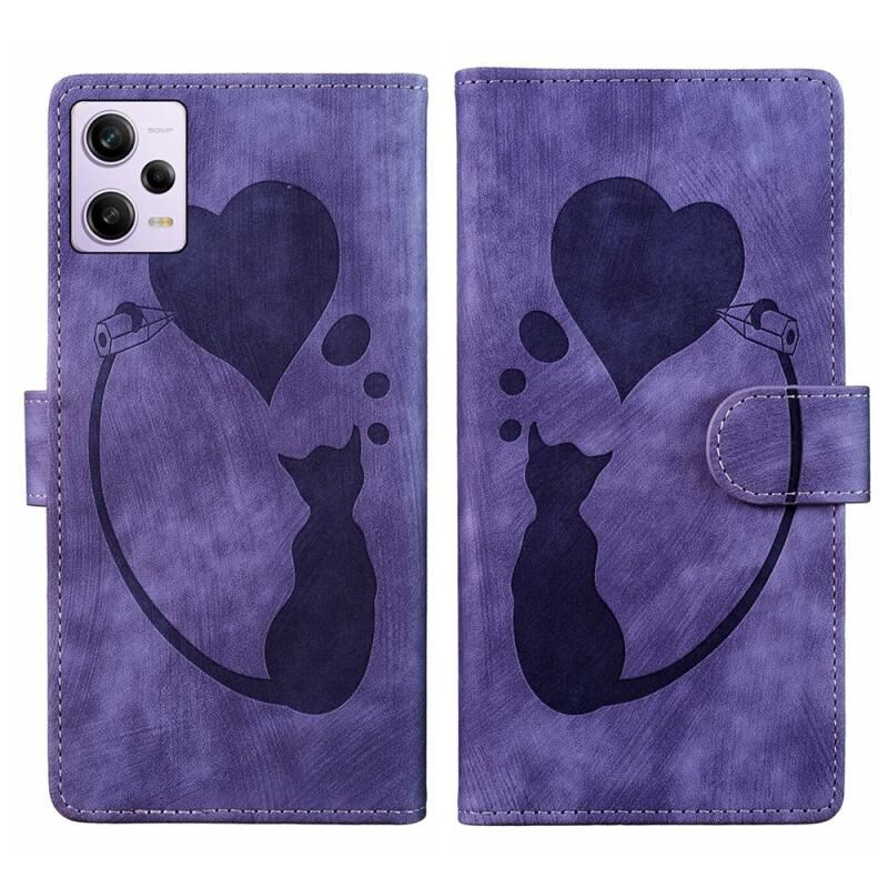 Θήκη τηλεφώνου δερμάτινη με ανάγλυφο σχέδιο καρδιάς και γάτας για Xiaomi Redmi Note 12 Pro 5G Global (Πορτοκαλί)