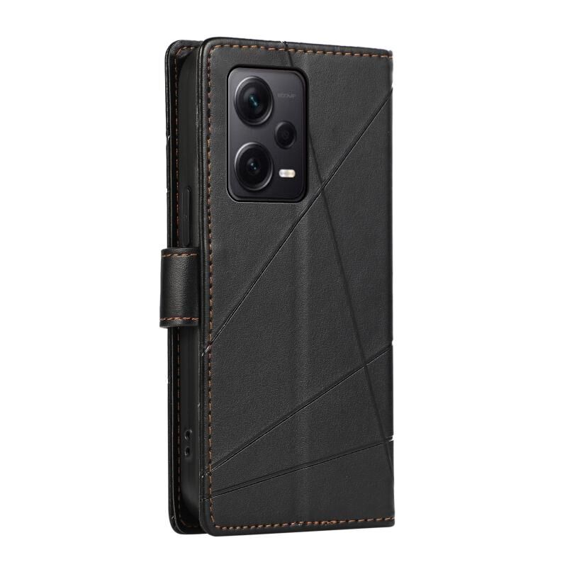 Θήκη τηλεφώνου Xiaomi Redmi Note 12 Pro+ 5G Global από γνήσιο δέρμα PU με ανάγλυφη υφή και γραμμές (Μπλε)