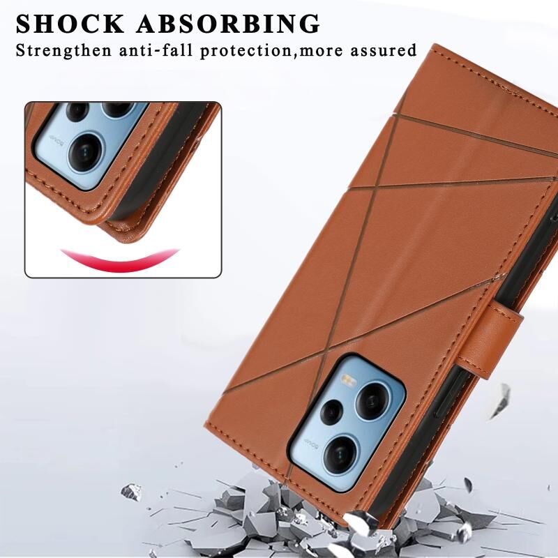 For Xiaomi Redmi Note 12 Pro 5G Global PU Genuine Leather Texture Embossed Line Phone Case(Brown)