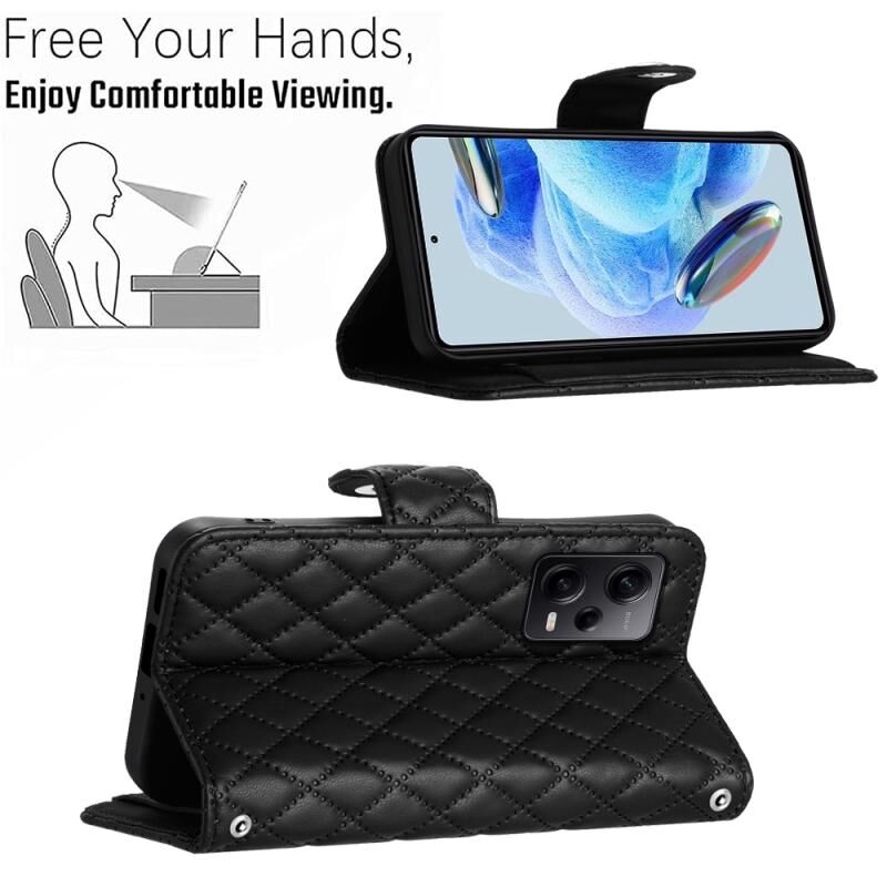 Για Xiaomi Redmi Note 12 Pro + 5G Global Rhombic Texture Flip δερμάτινη θήκη τηλεφώνου με μακρύ κορδόνι (Μαύρο)