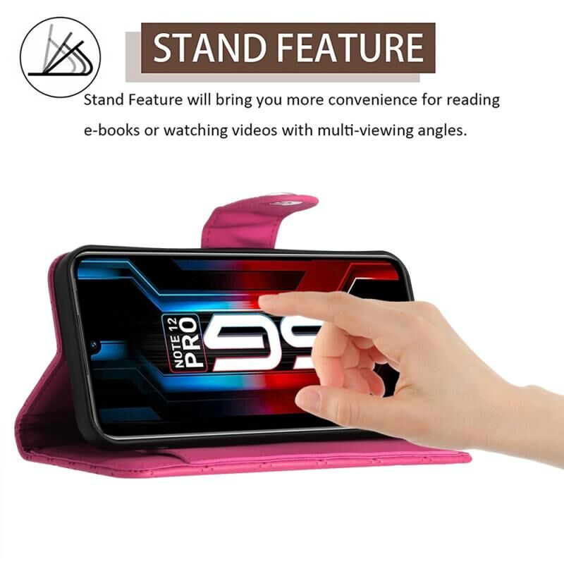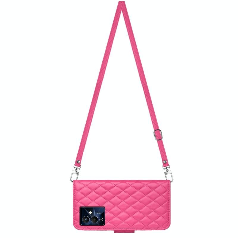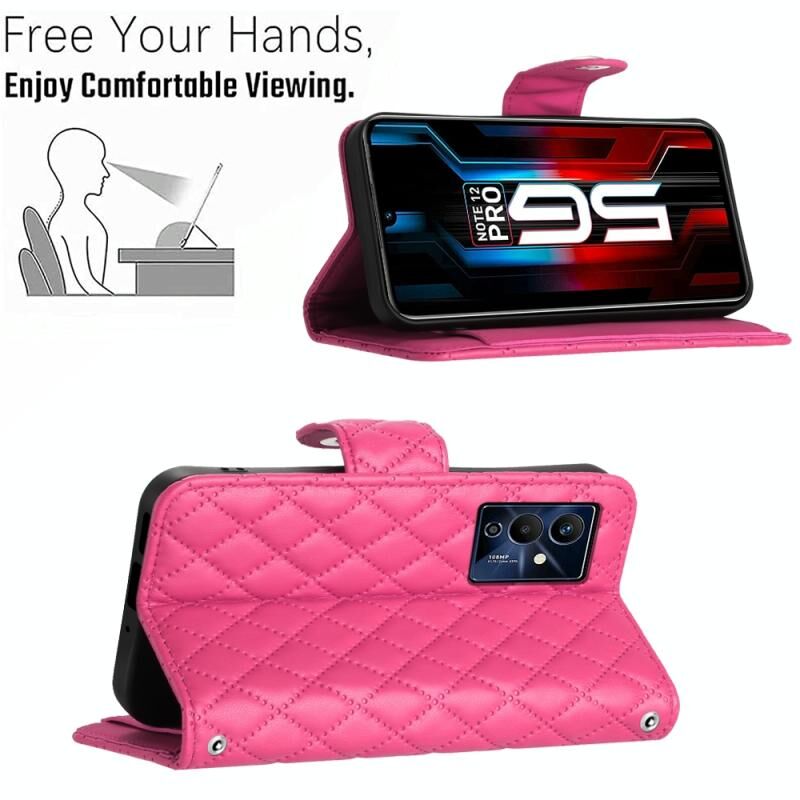 Για Xiaomi Redmi Σημείωση 12 Pro 5G Παγκόσμια Rhombic υφή Flip δέρμα τηλέφωνο υπόθεση με μακρύ κορδόνι (Rose Red)