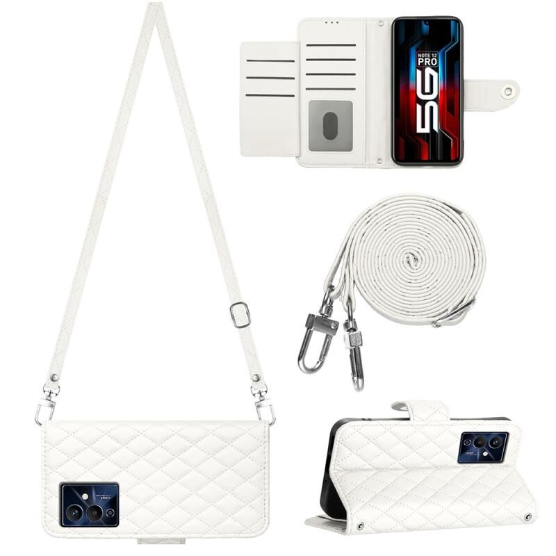 Για Xiaomi Redmi Note 12 Pro 5G Global Rhombic Texture Flip δερμάτινη θήκη τηλεφώνου με μακρύ κορδόνι (Λευκό)