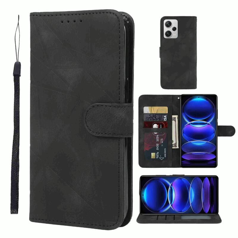 Για Xiaomi Redmi Note 12 Pro + 5G Global Skin Feel γεωμετρικές γραμμές δερμάτινη θήκη τηλεφώνου (μαύρο)