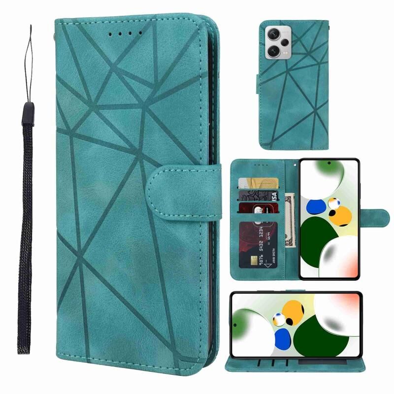 Για Xiaomi Redmi Note 12 Pro 5G Global Skin Feel Γεωμετρικές γραμμές δερμάτινη θήκη τηλεφώνου (πράσινο)