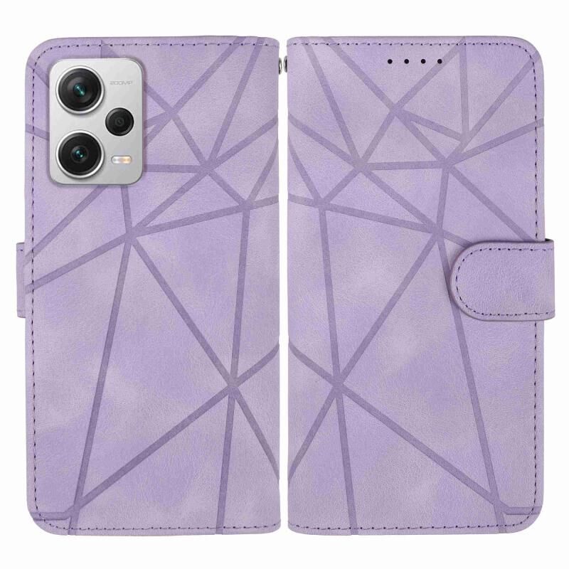 Για Xiaomi Redmi Note 12 Pro 5G Global Skin Feel Γεωμετρικές γραμμές δερμάτινη θήκη τηλεφώνου (μωβ)